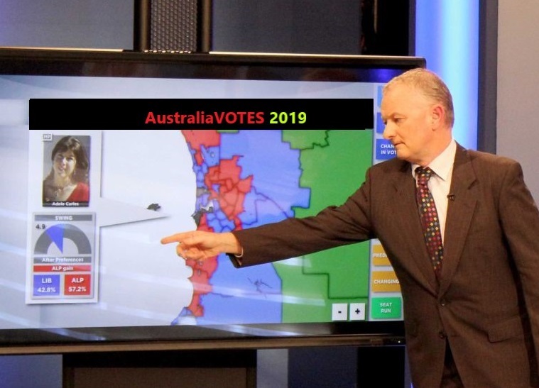 “I have extrapolated the 0% of votes so far and run them through my computer model using preference flows from the recent Wentworth by-election and the earlier five by-elections in July,” he told viewers of ABC TV’s 2019 election broadcast live from Canberra.