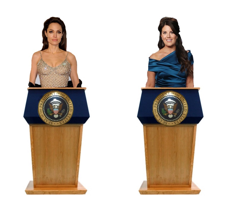 Party sources have told The Bug that Democratic operatives are deep in discussions with actor Angelina Jolie (above left) and former White House intern Monica Lewinski (above right) to run as Democratic nominees for President and Vice-President.
