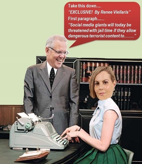 This week was no exception with a front-page and page-eight “exclusive” preview of Prime Minister Morrison’s plans to make the bosses of social media companies more accountable for policing the content uploaded to their platforms (pictured). The only problem was its sister paper in Sydney, the Daily Telegraph had been given the same story.