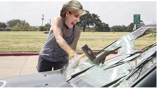 But after she had taken several dozen swings at the vehicle, one of the Senator’s aides approached her to say she had mistakenly demolished her own chauffeur driven ComCar limousine.