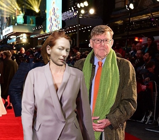 “So we had to call on Tilda and Alan who got here just in time. We had costumes, professional make-up artists, a big pointy prosthetic nose ready, a grey basin-cut wig, and being the consumate professionals, they pulled it off faultlessly.”