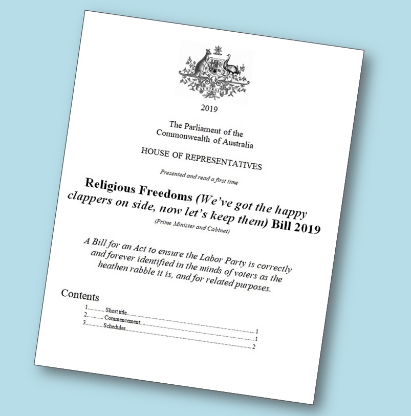 Religious Freedoms (We’ve Got the Happy Clappers On Side, Now Let’s Keep Them) Bill 2019