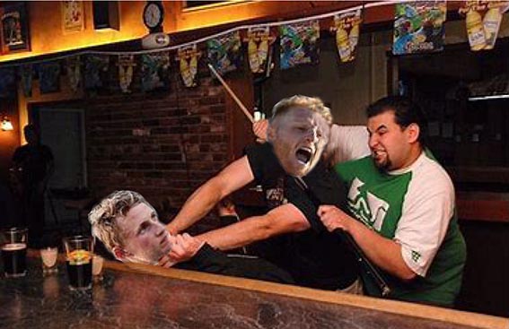 The Bug understands the drunkard then lunged at Stokes with his pool cue, and as our exclusive picture at top shows, Stokes in turn had to restrain Root who was threatening to give the chap a Liverpool kiss.