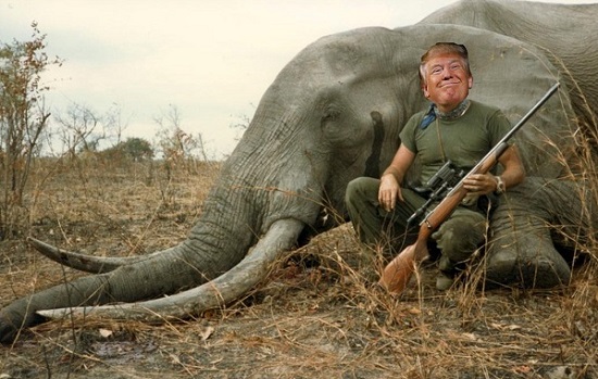 In recent days Mr Trump has signalled his shift to the far right by making a flying visit to Africa (main picture) where he went elephant hunting and declared that if re-elected he would make the “sport” legal in the USA and create more jobs by re-establishing the ivory trade.