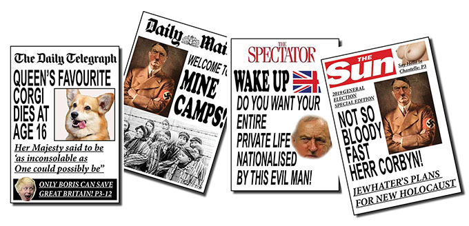 Two of the mastheads – the Daily Mail and The Sun – have focussed on the grim future awaiting Britain’s Jewish people if Jeremy Corbyn ever gets his hands on the keys to Number 10.