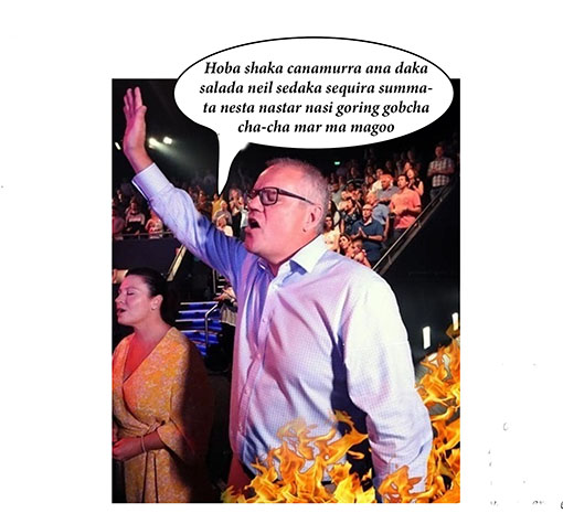 Or put another way, while the PM’s constant references to the Second Coming at the church was thought by fellow worshipers to refer to his anticipated victory in the 2022 federal election, his infallible Master above knew better.