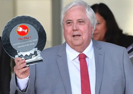 Chair of the judging panel, The Bug’s finance and investment columnist Morrie Bezzle, told reporters that last year’s winner Clive Palmer (main picture) would again be considered for the 2019 award.