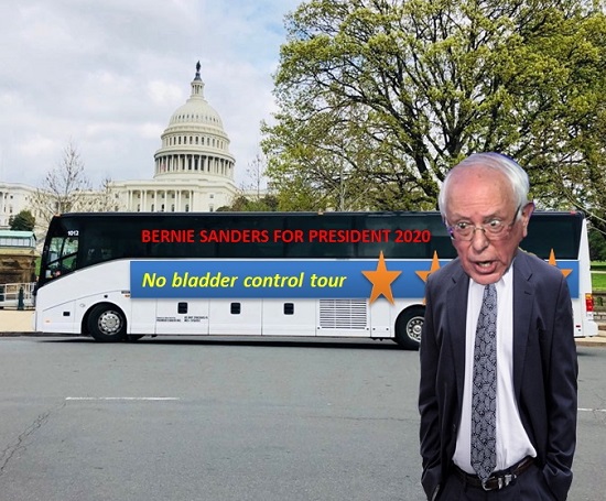 In response, his rivals have unveiled their own slogans for their campaign buses with 78-year-old Vermont Senator Bernie Sanders running with “No bladder control” which he said reflected his desire to be totally honest with voters.
