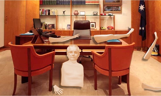 However, new pictures leaked to The Bug show the PM’s staff faked the shot by using a mannequin made up to look like the PM which was later disassembled before being smuggled out of his office (main picture).
