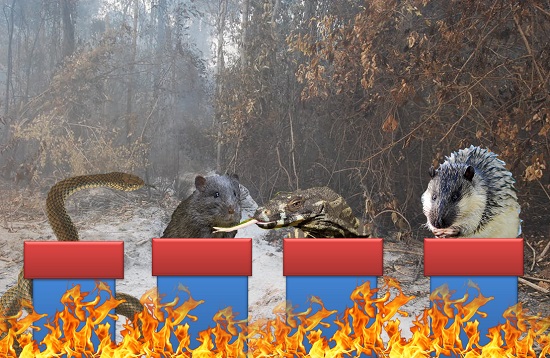 A brown snake, native swamp rat, goanna, and native water rat or rakali today took the unusual step of holding a news conference in a fire-hit state forest on the NSW mid-north coast (main picture).
