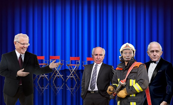 After an agonising and teasing two-minutes’ silence and no activity, out walked – two from each wings – our four living Sydney prime ministers: the old and the simple in John Howard and his “political lovechild” Tony Abbott from the right; the silver-spooned toff and the boofy bloke next door in Malcolm Turnbull, and Scott Morrison from the left.