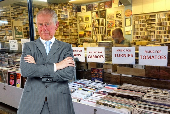 “The shop doesn’t generate much income, but the Prince has plans to stock more music composed especially for growing organic produce and also sell more accessories like headphones tailor made for various vegetables which he hopes could turn things around,” my source said.