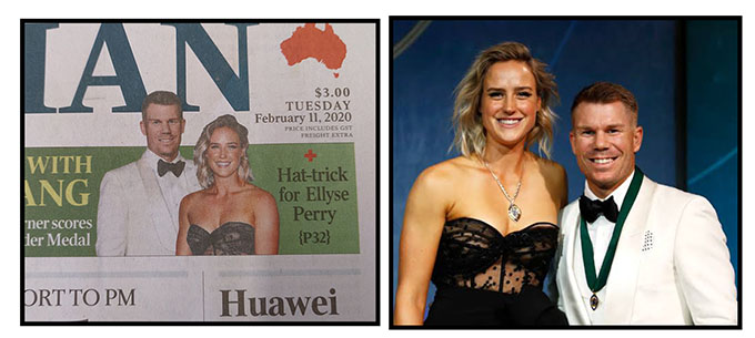 The Bug is indebted to various Twitterati who gleefully pointed out the lengths Australia’s most popular and by far best selling national broadsheet went to in its Tuesday edition (above) to show that David Warner was head and shoulders above other winners at the annual cricket awards in Melbourne.