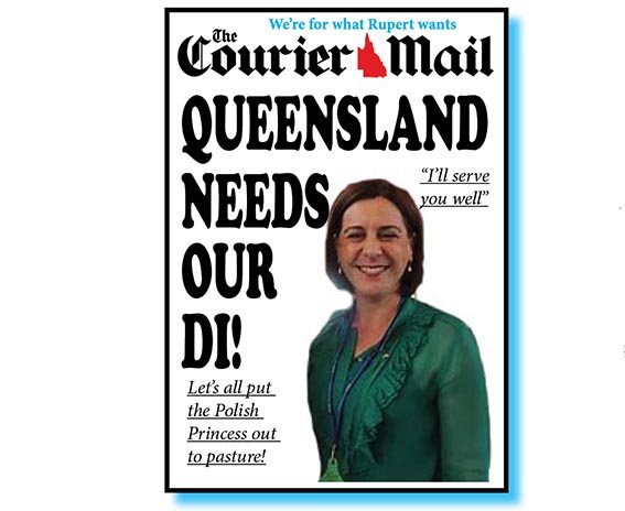 That front page says everything you need to know about the new editor of Brisbane’s monopoly shitloid and gives fair warning of what the paper’s readers in general – and the Labor government of Annastacia Palaszczuk in particular – can expect in the months leading up to the October 31 state election.