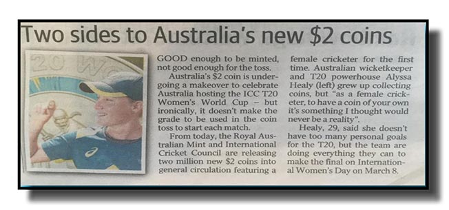 From yesterday, two million of the $2 coins will be released into circulation. The coin features a female cricketer for the first time, Alyssa Healy, as Australia prepares to host the T20 World Cup.