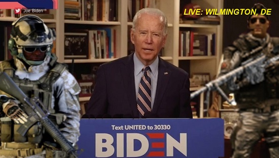 Viewers immediately flooded social media channels to express their shock at the sudden appearance of the heavily armed troops, but also to express their surprise that Mr Biden did not notice them.