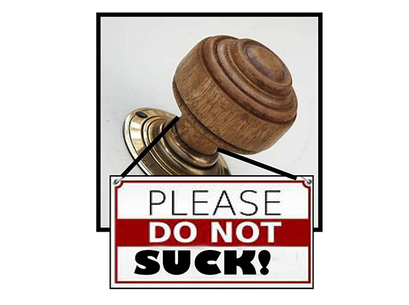 I don’t know how many doorknob suckers there are out there but I think any woman – or man for that matter – down on their knees and about to suck a new doorknob deserves to know a bit of its history and whether its sexual health has been looked after, don’t you?