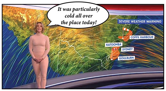 The countless calls, some too ribald to repeat in Australia’s No1 family internet newspaper, followed what appeared to be Australia’s first nude weathergirl presentation on Channel 9 Sydney’s 6pm news by Belinda Russell on Saturday night (pictured above).