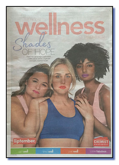 Additional sections: The Herald had a 24-page Sundaylife magazine with some four-and-a-half pages of ads; The Sunday Tele had: a 40-page The House of Wellness magazine, which despite the misleading cover about some Liptember campaign for women’s mental health, looks very much like a Chemist Warehouse price catalogue. Let’s call it an insert but even then, it wouldn’t have come cheap (you can support Liptember, by the way, with some gorgeous lippy from you-know-who for only $4.99!) ; a 24-page tabloid Escape travel magazine, with six pages of obvious advertising and who knows how much of the rest of it was paid content; a 28-page Binge guide for Murdoch’s streaming service, with three pages of outside advertising, and an eight-page FundayTele liftout for the kids.