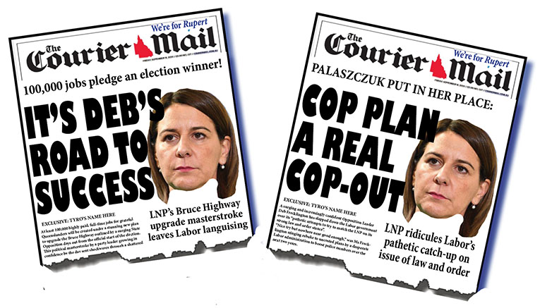Deputy editor: That’s right, Chris. Deb Frecklington has announced a major upgrade of the Bruce Highway from Gympie to Cairns – a brilliant piece of infrastructure spending that will blow the state election wide open and ensure an LNP win on October 31.