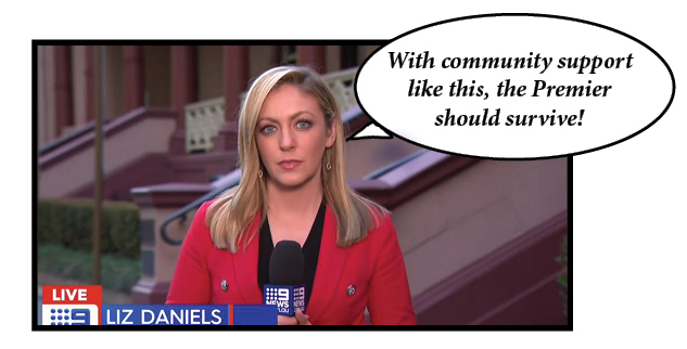 So we stay with that news studio and take a look at state political reporter Liz Daniels’ report on Wednesday night of Gladys Berejiklian’s bad choice of a personal partner.