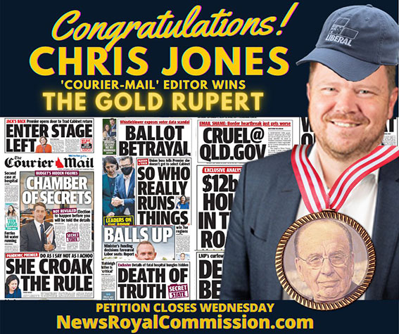 We offer a more immediate and far more effective response to the disgraceful, unprofessional and totally biased coverage the Dirty Digger’s Sunshine State monopolies gave in the months leading up to the October 31 state election: the Palaszczuk government has to cease immediately any government advertising spend with The Courier-Mail, the Sunday Mail, the Cairns Post and the Townsville and Gold Coast Bulletins.