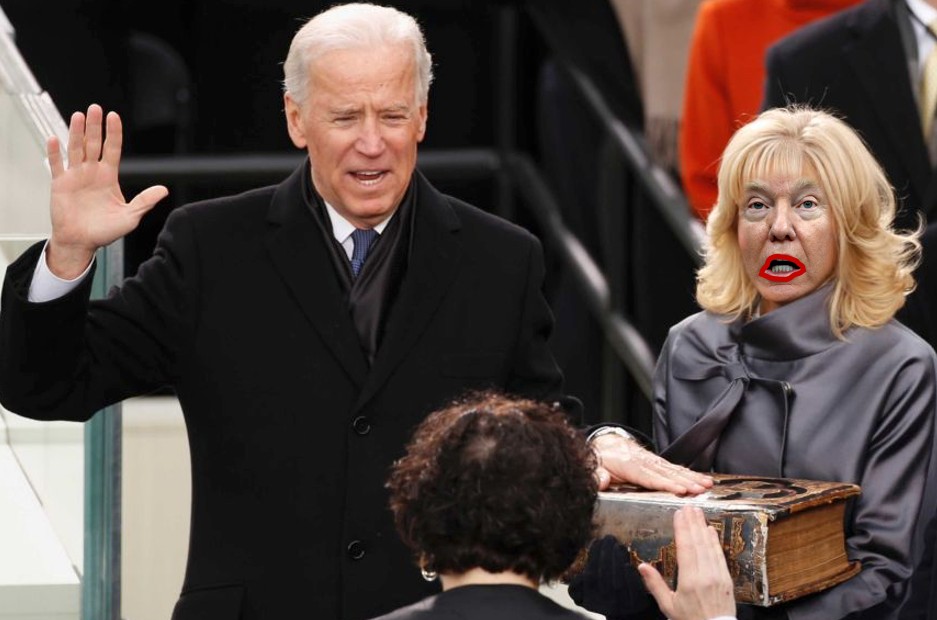 “Mr Trump planned to stand alongside Mr Biden pretending to be his wife and as the oath of office was administered by US Chief Justice John Roberts he would surreptitiously place his own hand on the Bible Mr Biden plans to use and recite the words of the oath a split second ahead of Mr Biden.