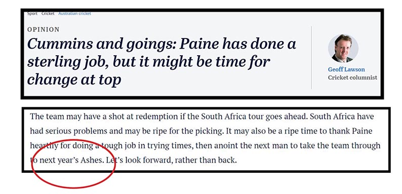 A big cheerio to Geoff “Henry” Lawson for his lengthy and well-thought-out comment piece in today’s Sydney Sun-Herald about who should captain the Australian Test cricket team.