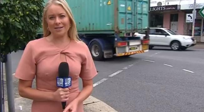 The Bug’s Media Glass House is indebted to Channel 9 Sydney news reporter Airlie Walsh (above) for showing us on Thursday’s 6pm bulletin just how exciting a story about trucks rat-running through a Sydney suburb to avoid a toll road can be.