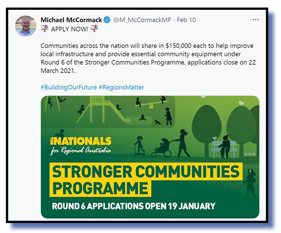 The bookies responded fairly quickly after Deputy Prime Minister Michael McCormack (above) earlier this week tweeted fresh news of the sixth round of the Stronger Communities Programme (right).