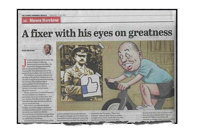 Much of Hartcher’s article praises Frydenberg for steering the ill-fated National Energy Guarantee to its eventual oblivion, winning his fight with Facebook (very debatable) and accepting the Treasury’s most expensive response to battling COVID-19. All and good.