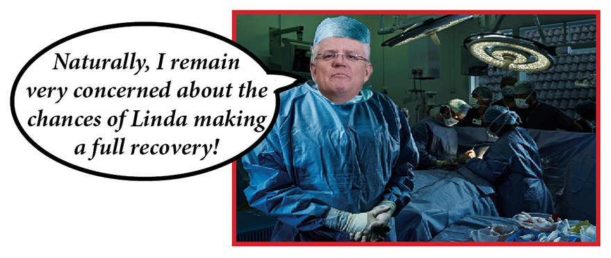 CANBERRA: Sceptics who have suggested that Defence Minister Linda Reynolds is feigning heart issues and hiding in hospital to avoid scrutiny over how she handled a rape claim are looking pretty bloody stupid and red-faced this morning.