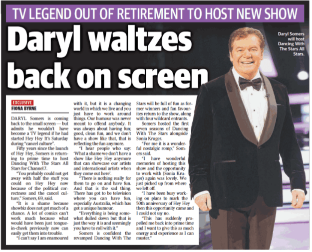 Australian TV veteran Daryl Somers says he plans to revive some audience favourites in his role as host of the Seven Network’s new show Dancing With The Stars – All Stars. (main picture)