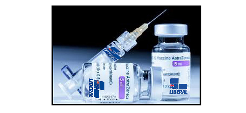 Both the phials and the needles being used to administer the Astra-Zenica vaccine to some six million Australians during the phase have been branded with the Liberal Party of Australia logo. (above)