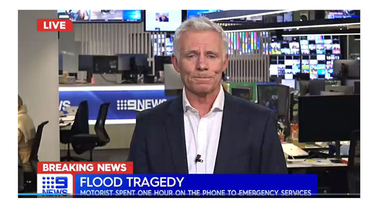 Reporter Damien Ryan’s extensive report on the flooding across NSW at the beginning of the bulletin did not mention Sydney Harbour but simply said the man’s car was found in water six metres deep.