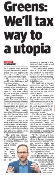 News Corp’s Sunday turdbloids also ran a preview story on the launch of a major pre-election manifesto by leader of the Australian Greens, Adam Bant.