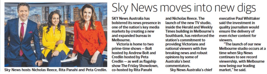 It seems that Sky News – another Murdoch-related operation – has moved into news premises in Melbourne.