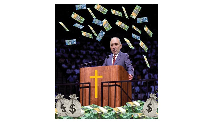 “The grim reality is that no matter how much devotion to our Father they’ve shown by attending our church, He alone with our church accountants will know how much they’ve donated over time to our essential work in Christian community outreach and how much merchandise they’ve purchased such as our excellent range of CDs of gospel music by our excellent choirs, beautifully bound books on achieving eternal love, hope and faith or indeed my most inspirational sermons.