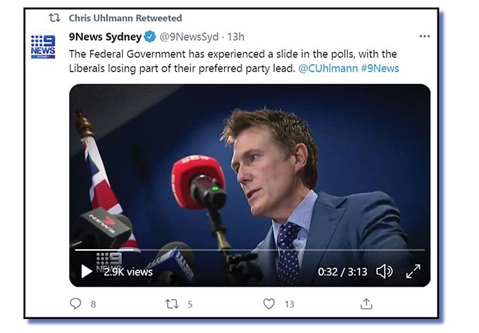 Have a captain’s at this retweet of his to promote that Nine news item.