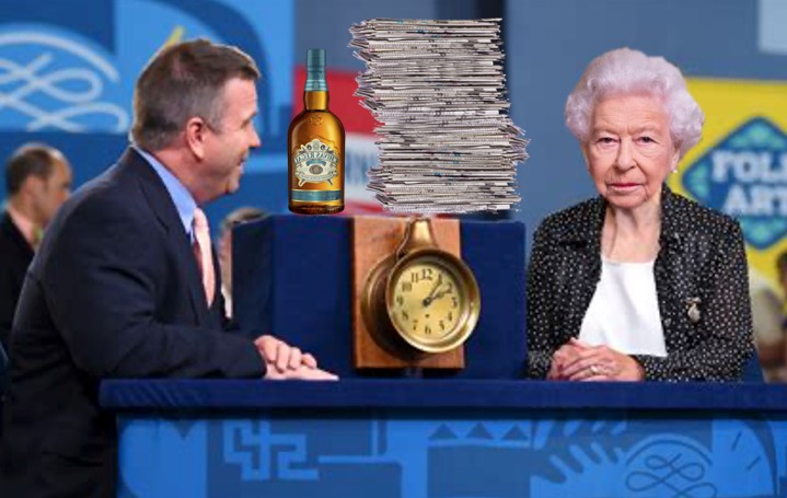 “In fact all she could find was an old Royal Navy clock from one of the warships the Duke commanded before he and Her Majesty married, plus an unopened bottle of single-malt Scotch, and a stack of old porn magazines.