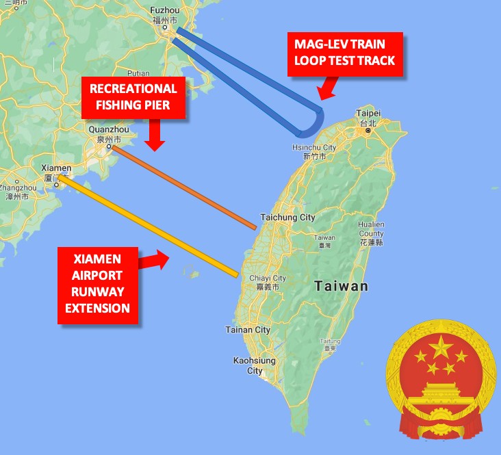 However, the most ambitious of the three projects is a 500 km long offshore rail loop that a Chinese Government spokesperson said would help test magnetic-levitation trains now being developed in the city of Fuzhou, the provincial capital.
