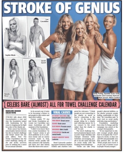 Many of last weekend’s News Corp Australia’s Sunday papers around the nation provided a prime example with a story about “celebrities” supporting a new fundraising campaign to raise money for the Stroke Foundation to fund research. (pictured)