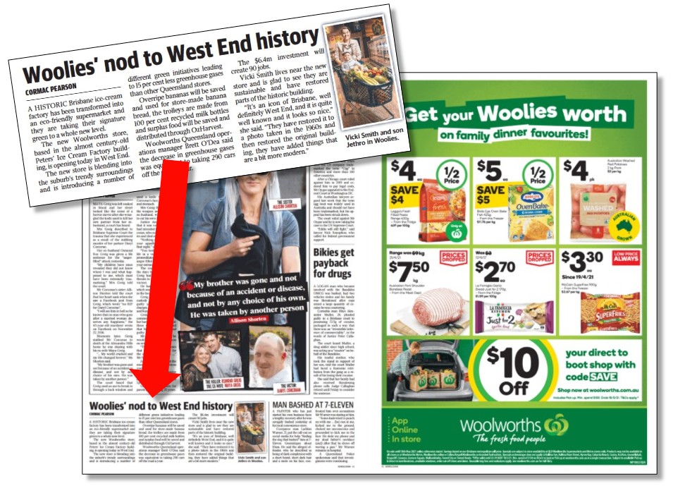 Take a look at the glowing story about the very, very positive environmental features of a new Woolies supermarket opening in Brisbane that appeared in today’s News Corp turdbloid The Courier-Mail.