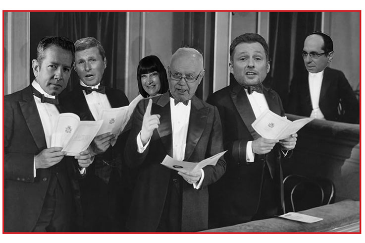 Other members of the Mainstream Media Political Commentators Combined Choir (pictured right at a recent practice session), whose charter is to see the re-election of the well-performing Morrison Government as early as possible for the nation’s sake, reacted enthusiastically on hearing the new song performed.