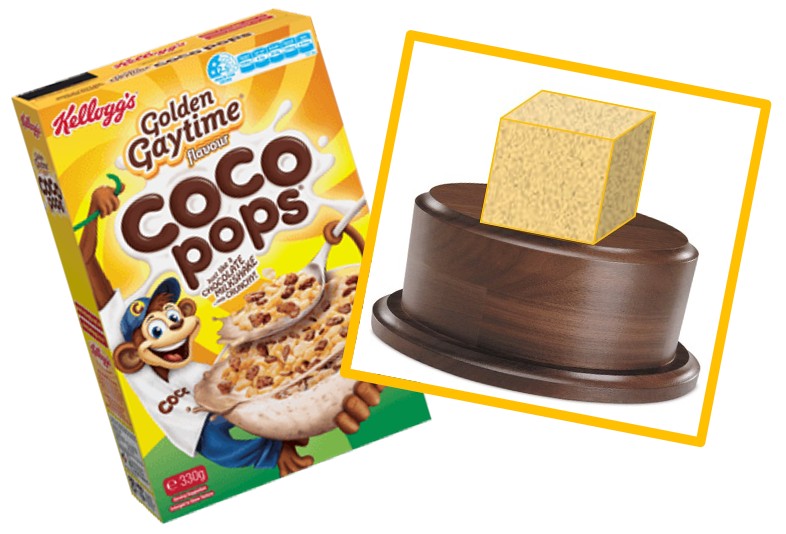 The company’s recently released Golden Gaytime-flavoured Coco Pops last night won the Golden Cube (main picture) presented each year by the Australian Sugar Producers’ Association for the product epitomising the most unnecessary and excessive use of sugar.