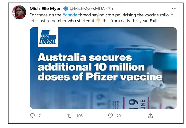 On the same day, Mich-Elle Myers – @MichMyersMUA – (and, boy, aren’t we at The Bug starting to think it would be good idea to award only people with simple Twitter handles) had this timely reminder of who have really been the experts in politicising anything that might garner them an unwarranted extra vote.