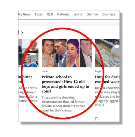 Readers of News Crap Australia’s daily turdbloid in Brisbane, The Courier-Mail, will be aware of how many stories it runs on supposed scandals and hijinks among students, teachers, or even parents linked to local private schools. Or “elite private schools” at it invariably describes them.