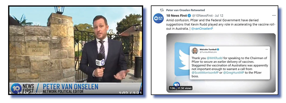 That was when van Onselen and a number of other MSM political writers and commentators first realised how damaging to Prime Minister Scott Morrison was the news that former Prime Minister Kevin Rudd had responded to requests from senior bizoids and phoned Pfizer chief Albert Bourla to see whether vaccine supplies contracted for 2021 could be sped up.