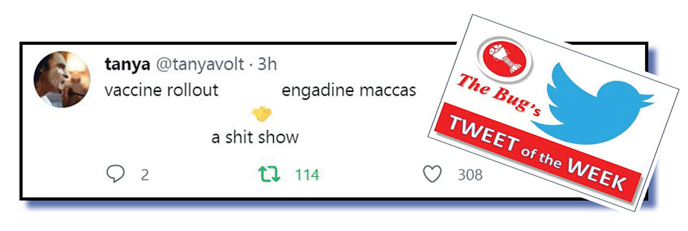 Short and sweet did the trick for The Bug‘s judging panel when it came to picking its Tweet of the Week for the last seven days – or so.