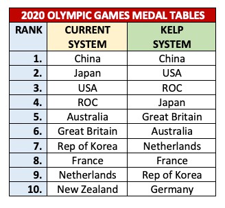 Professor Kelp said his system allocated three points for a gold medal, two points for silver, and one point for a bronze medal.